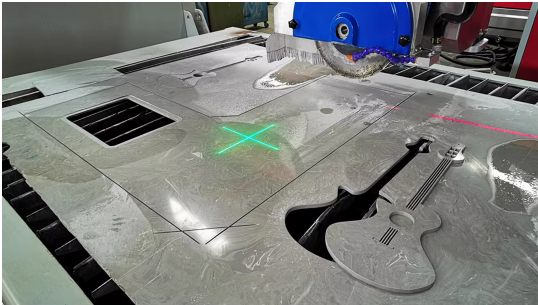 The waterjet cutting head is perfect for mitering and cutting through different materials into precision intricate shapes and angles, ideal for cutting porcelain, stone, marble and granite inlay patterns.